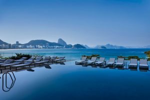 É a este grupo de hotéis em locais privilegiados que o Fairmont Rio de Janeiro Copacabana figura. Além do cenário natural de encher os olhos, o hotel carrega histórias. Nos anos 30, ali já funcionou um cassino importante, e depois uma estação de televisão com o nome da cidade. Mais tarde, no mesmo local foi construído um hotel de luxo, inaugurado por um show de ninguém menos que o cantor Frank Sinatra. Anos depois foi sucedido pelo Sofitel. Até que após dois anos de reforma renasceu com o nome atual.